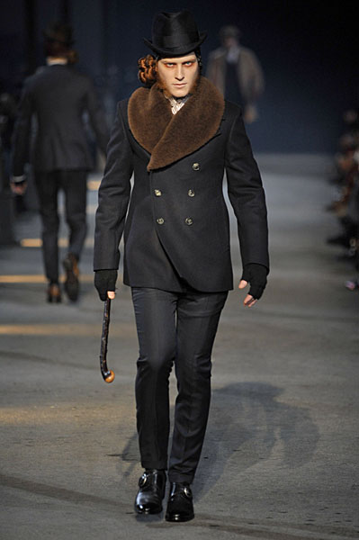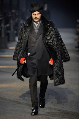 See Alexander McQueen ..jekell to hyde winter collection for men as seen in ft how to spend it.com.McQueen styles his etheral magic turning waistcoat to jacket to coat to cape.Menacing elements in accessories blend style and magic to produce this look.
